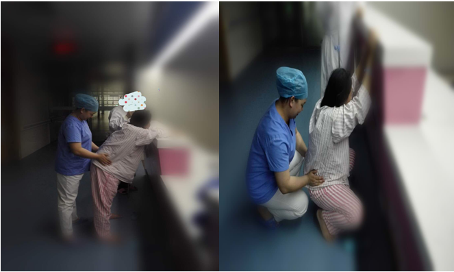 (图三、图四为赖群欢护士长为产妇指导导乐分娩)